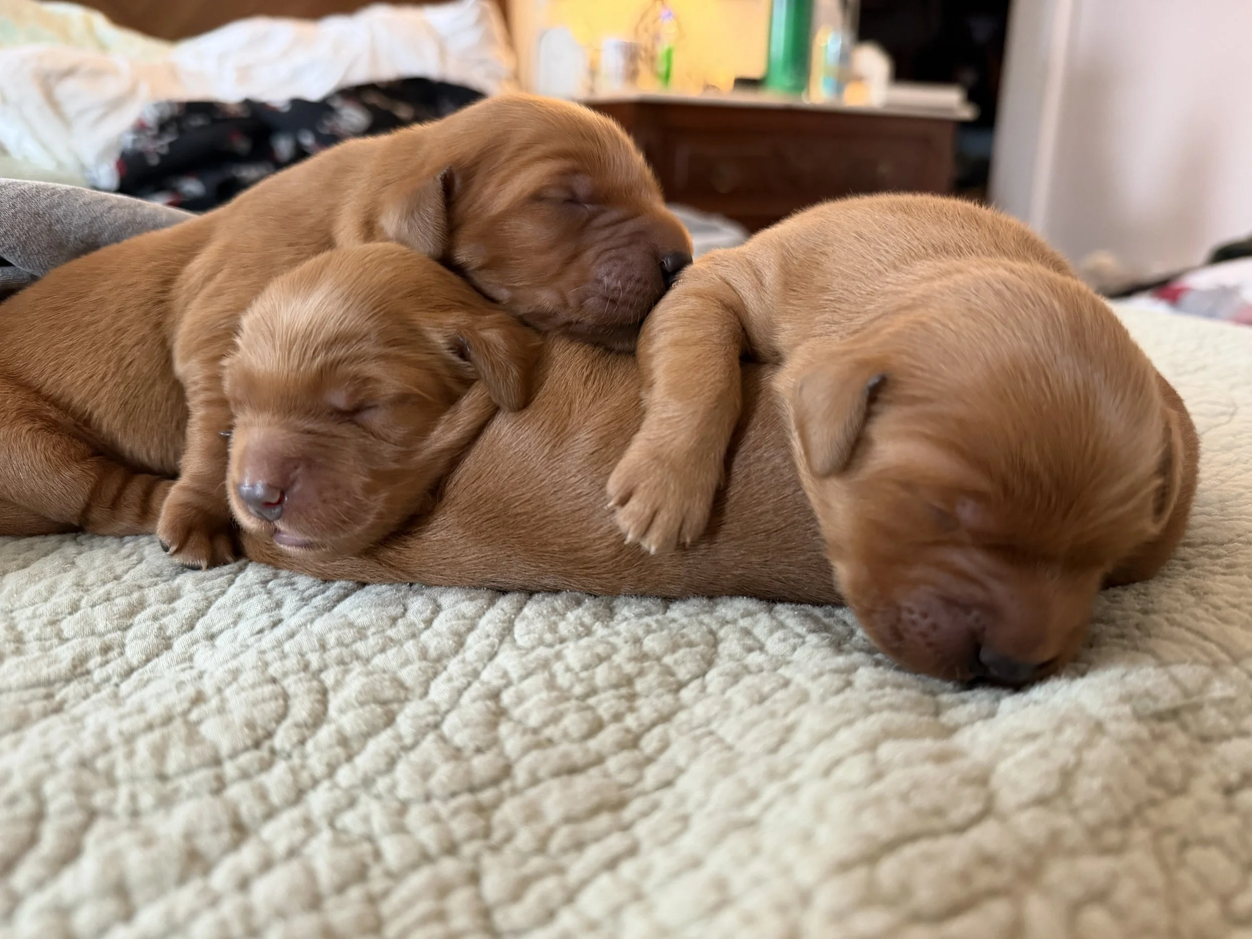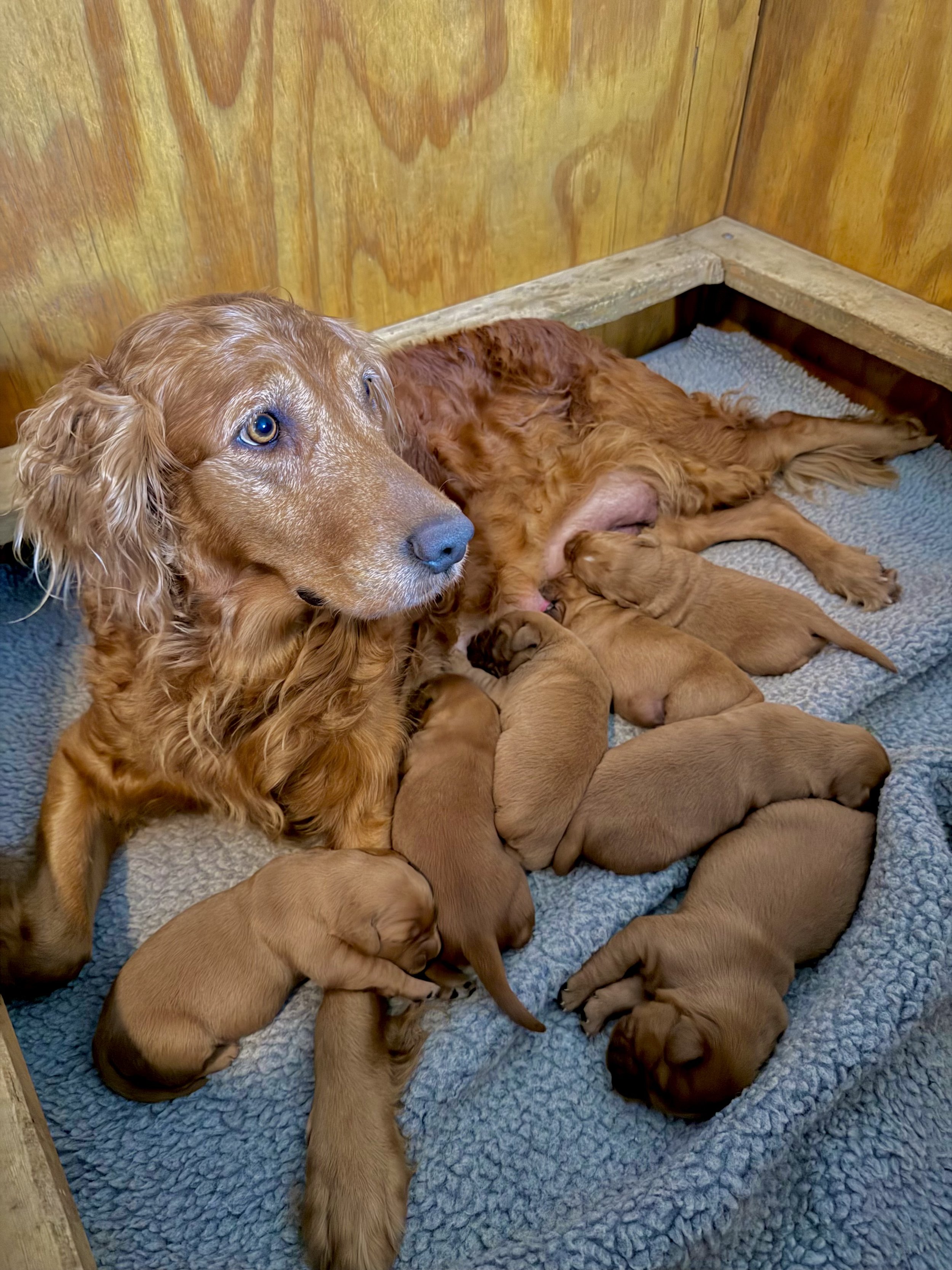 Puppy Pedigree is linked below, please check out this wonderful litter. These sweet little munchkins have their eyes open and are crawling around, getting ready to find some birds! Puppies will be ready to go home the first week of February. We start potty training, crate training and exposure to noises, textures and people before they head home.